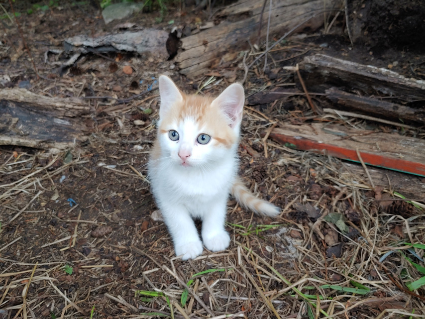 I think I have spotted another older kitten around. I’ve seen it at least twice, and had mistaken it for Junk Pile cat, but it has more white, and looks to be about the same age as her kittens. I have no idea where it is coming from, or which mama cat it is with! Perhaps one of Rosencrantz’s kittens? I thought she had three, but I just went back through my old photos, and I only ever captured two in the pictures; an orange one that we haven’t seen since, and the white one with grey and orange spots that I sometimes see.