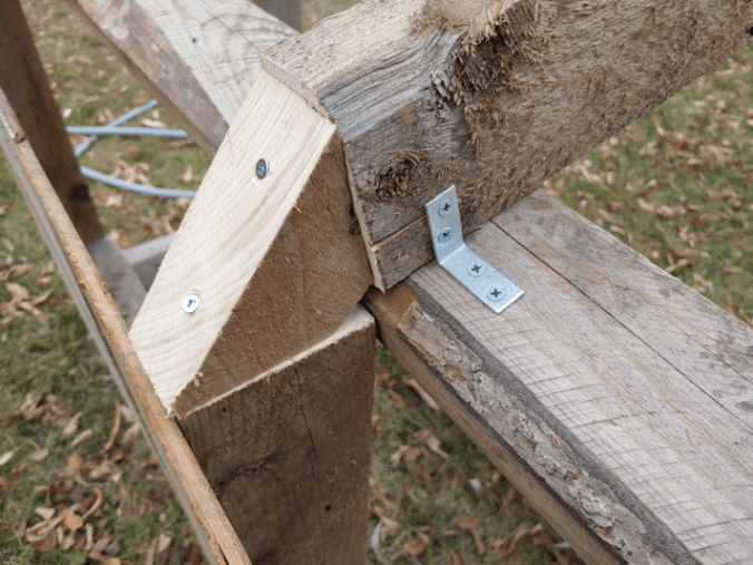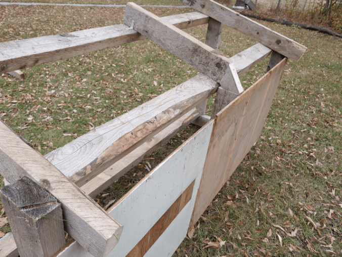 Which is not a bad thing. It’s actually more stable this way, and there’s more room on the inside. However, I wasn’t able to match the top horizontal supports. Since the roof supports are at an angle, the screws that hold them in place are more staggered, so the chance of hitting one while screwing on the vertical support was pretty high. So I moved the top horizontal posts and attached them in front of the vertical ones.