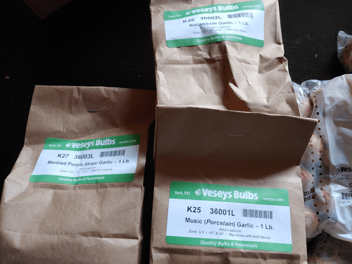 Along with the three types of garlic that came in, my daughters’ flower bulbs arrived.