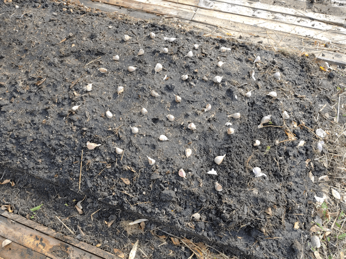 The Racombole turned out to have a lot more cloves, including more smaller ones. It was almost like soft neck garlic that way. So these were planted slightly closer together. More like 4 inches apart, rather than 6. I probably shouldn’t have bothered to plant the smallest ones, but I didn’t want to waste a single clove!