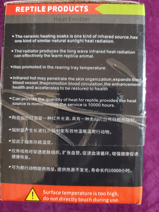 . Can provide the quantity of heat for reptile,provides the heat source is nonluminous,the service is 10000 hours.