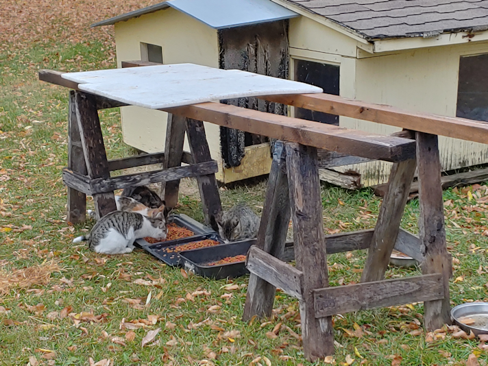 I have also been keeping an eye on the various materials I’ve been finding lying about, and I think I have what I need to make a quick little shelter for the outside food and water bowls. I want to keep those by the cat house, but don’t want them to be buried in snow. We’ll have the heated water bowl plugged into the second outlet in the cat house. The cord should be just long enough to reach outside the entry, so I’ll want to set something up there to keep it from getting snowed under, too. Last year, it was set up inside the sun room, so that wasn’t an issue. I will be working on plans for that, today, and hopefully will start building something tomorrow, when it’s expected to be warmer, and not raining.