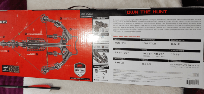 With that in mind, we did our research and decided on a crossbow at Cabela’s. It’s not high end, by any means, but it’s hardly bottom of the barrel, either. It will meet our needs.