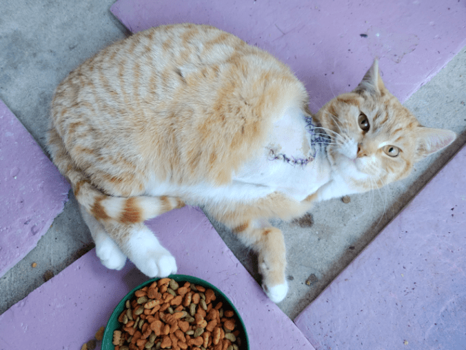 At least it gave me a chance to look at his surgical site. There’s still a touch of pink in the areas that had looked irritated before, but they are improving. The few times we’ve seen him start to scratch himself, he stops right away. As if he started to scratch a normal itch, but stopped when he scratched the tender areas instead. That has been a relief.