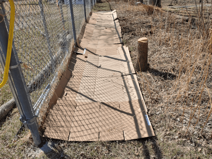 Those and some moving boxes were enough to cover the entire space between the flower bed and the fence. :-)