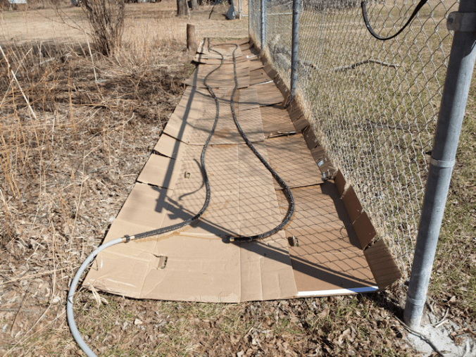Well… after spending some time removing all the tape. It took more time to get all the tape off than to lay out the cardboard!