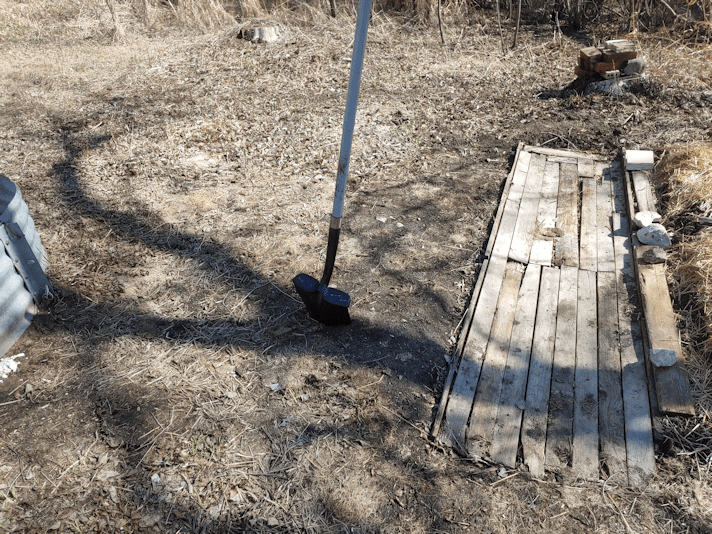 You can see a root sticking out that I couldn’t remove. I decided it wasn’t worth going back to the sun room to get something to cut it with. Some of the other roots I pulled out went under the boardwalk on the side! I’d dug those areas down to the gravel, too.