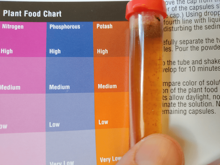 The nutrients are nice and high, all round – and so is the pH! Most of what we are growing recommends a pH of 6 – 6.5, so we’ll want to look into increasing the acidity a little, if we can.