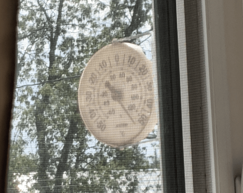 This thermometer is mounted on a white wall, so there’s no reflective heat from any dark surfaces, but it’s also in full sun, so it’s probably reading a bit high. Still, this is what it would feel like if someone were insane enough to be out in the sun today.