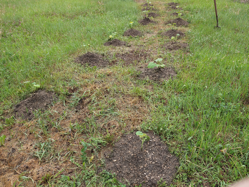 Then, because we had some, I emptied our kitchen compost along the fence line, which got tromped on before a soak.
