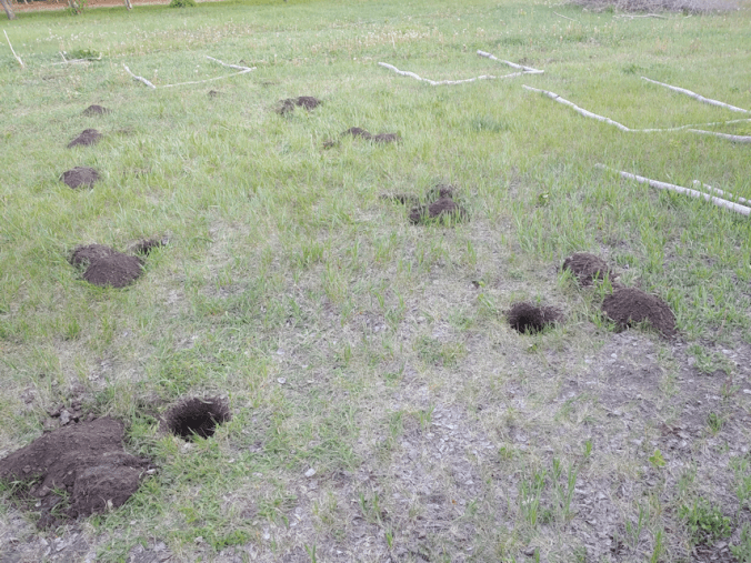 In refilling the post holes and tamping the soil down, a few of them did need to have more soil added. A good way to reduce some of the lumps in the old garden, left from when it was last plowed before we moved here.