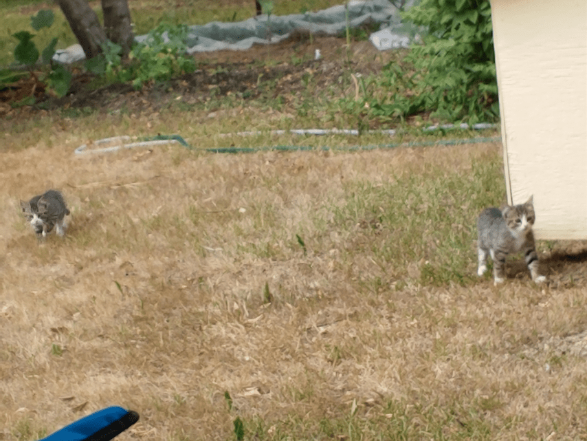It was Junk Pile cat and her kittens, slowly coming closer. In the above photo, she and three of her kittens are almost at the kibble house.