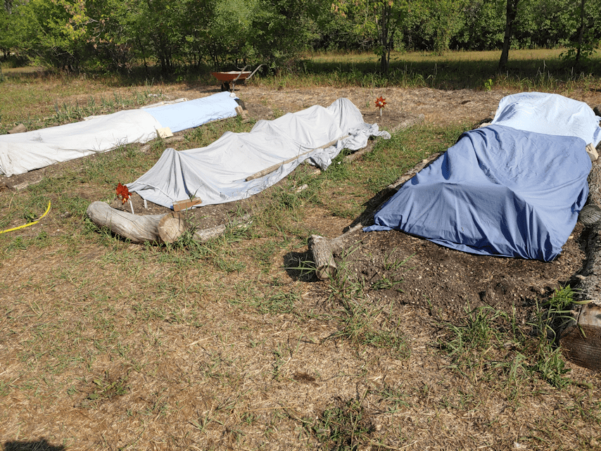 After making sure those that had been disturbed had soil pressed in for supper, it was time to add the new cover.