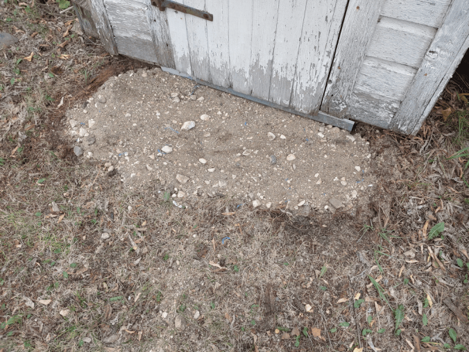 Also, that’s a very large opening under the door! It seems the edge of the pit had started to collapse. No surprise, since the pit was filling with water in the spring.