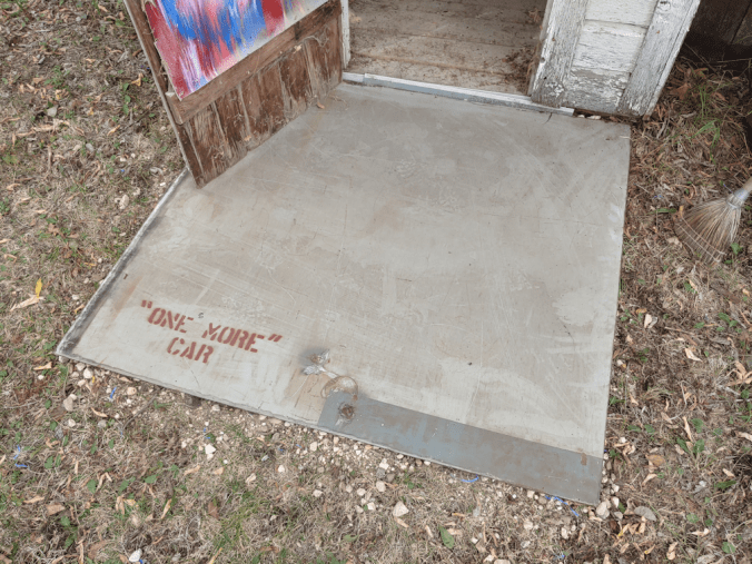 I just had to make sure the text on the metal sheet was facing so that it could be easily seen and read. I am curious as to why it says “one more” car, and why the words “one more” are in quotes, but the word “car” is not. :-D