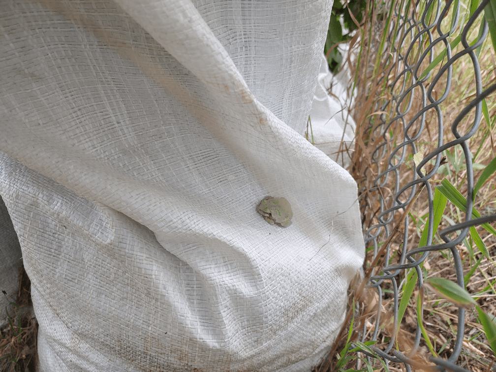 The tree frogs seem to really like the sacks we’re using to grow potatoes! I keep finding them, all tucked in and napping. :-)