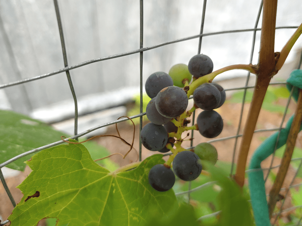 Though we have almost no grapes at all this year, the few we do have are managing to survive and ripen.