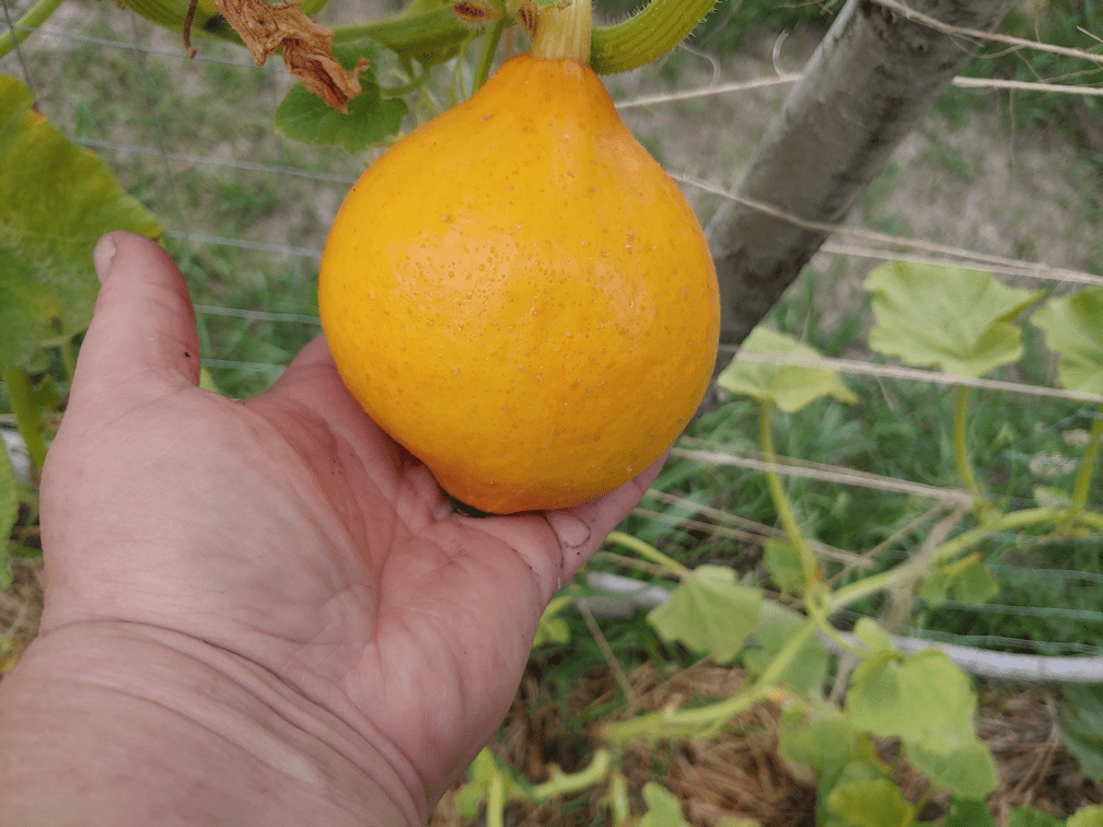 I am just loving how the colour is changing on this squash! Our one and only winter squash. Though there are many little ones growing, even if they don’t all die off as they have been, I don’t think there’s enough growing season left for them to fully ripen.