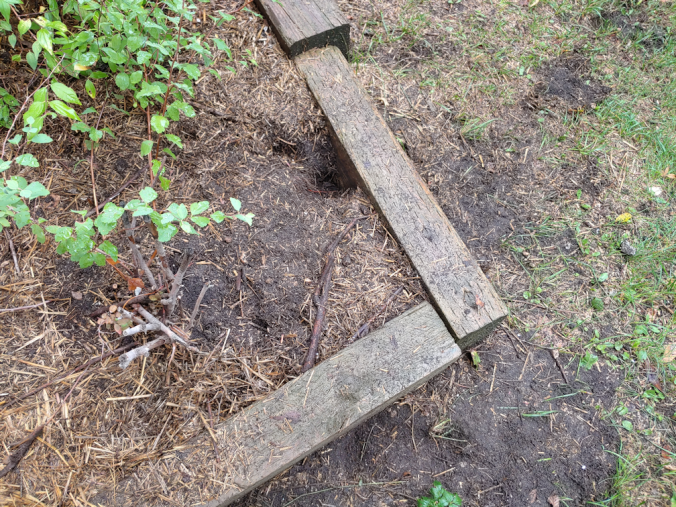 I suspect the rains brought a lot of grubs closer to the surface, and with this bed being so heavily mulched, it’s a lot softer than the soil outside of it. Snack time for the skunks!