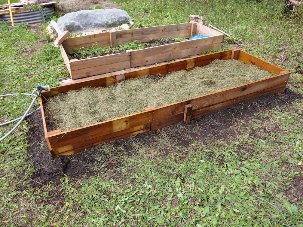 For now, the bed is done. The next two will be done the same way, though I still have to build the box for the bed that has beets growing in it. That will wait until after the second box is set up, since there’s nothing to do with that bed until the beets are harvested.