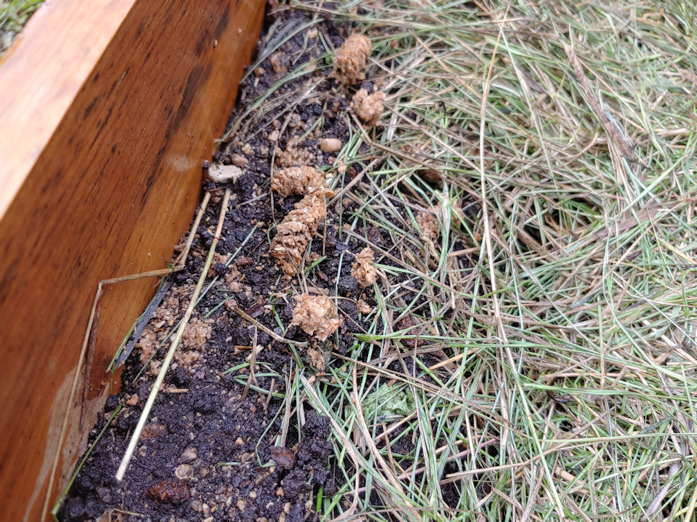 The final step was to cover it all with a grass clipping mulch and give it all a soak. It was a good chance to power wash the box itself a bit, in the process.