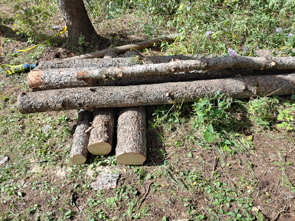 So here we have two 4′ and two 9′ lengths. Enough to make one course of logs to frame a high raised bed.