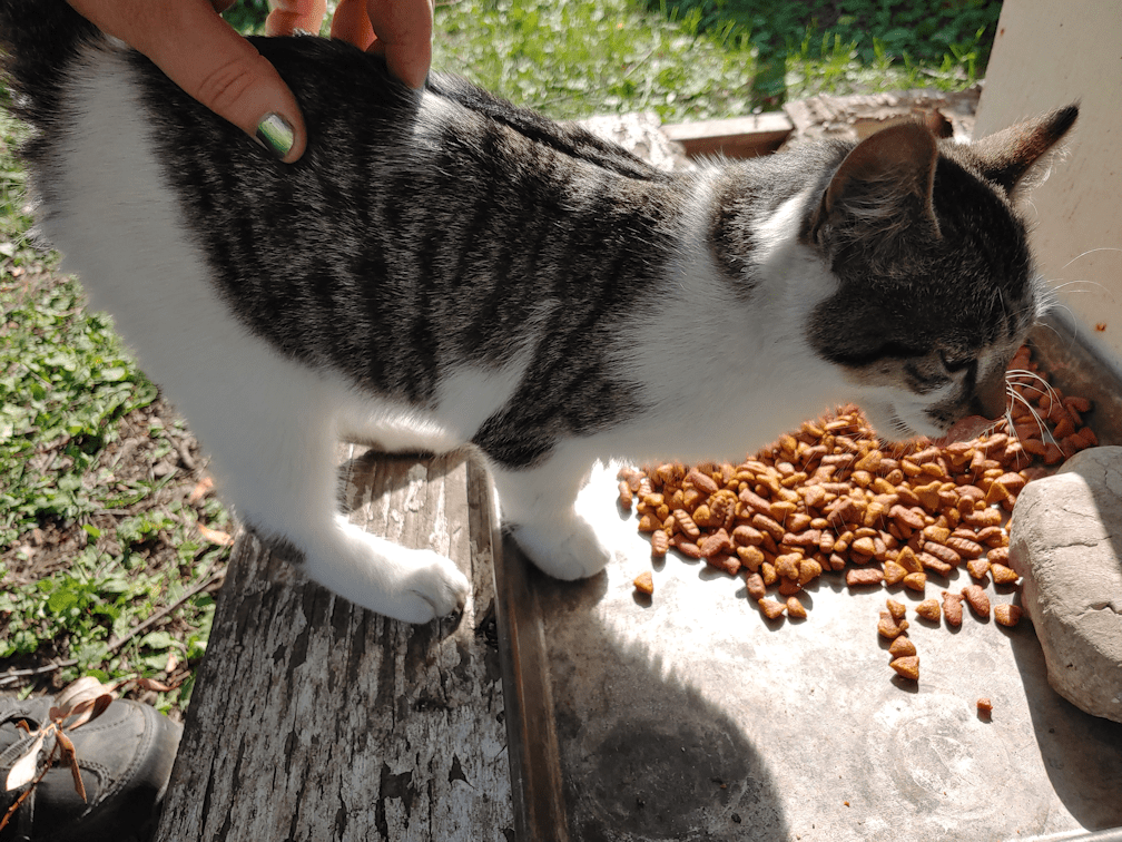 I even got to give Nosencrantz full body pets – but only while she was eating! Toesencrantz started to come close, but she was too nervous with me being so close, and kept going away. So I left, to give her a chance to eat.