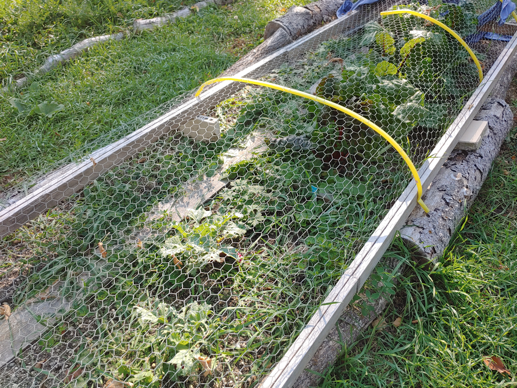 Once protected from critters and insects, we can at least say that the chard, lettuce and radishes were – eventually – a success. When we have our permanent, high raised beds, which will be only nine feet long, we will be making sure the covers we make for them will be easy to move aside as needed!