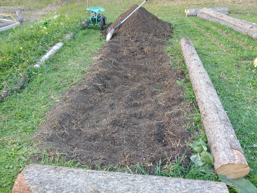 As much as I enjoy the work, it does help me realise how necessary having high raised beds will be. I don’t know how much longer I will be able to continue doing stuff like this. Weeding the bed was the most difficult and painful part. Thankfully, I was able to sit on the scooter for some of it, which helped, but this old body is breaking down. I can still do big stuff, like cutting and breaking down trees and carrying logs, but I’m loosing my fine motor skills on my hands. I drop things a lot more often, the joints are almost always stiff and sore, and that one finger just doesn’t seem to be getting any better. Then there is the back pain from bending over to weed. I can’t bend at the knees, since my knees are already shot. Strange that I’m losing my ability to do small, easy things faster than doing heavy manual labour!