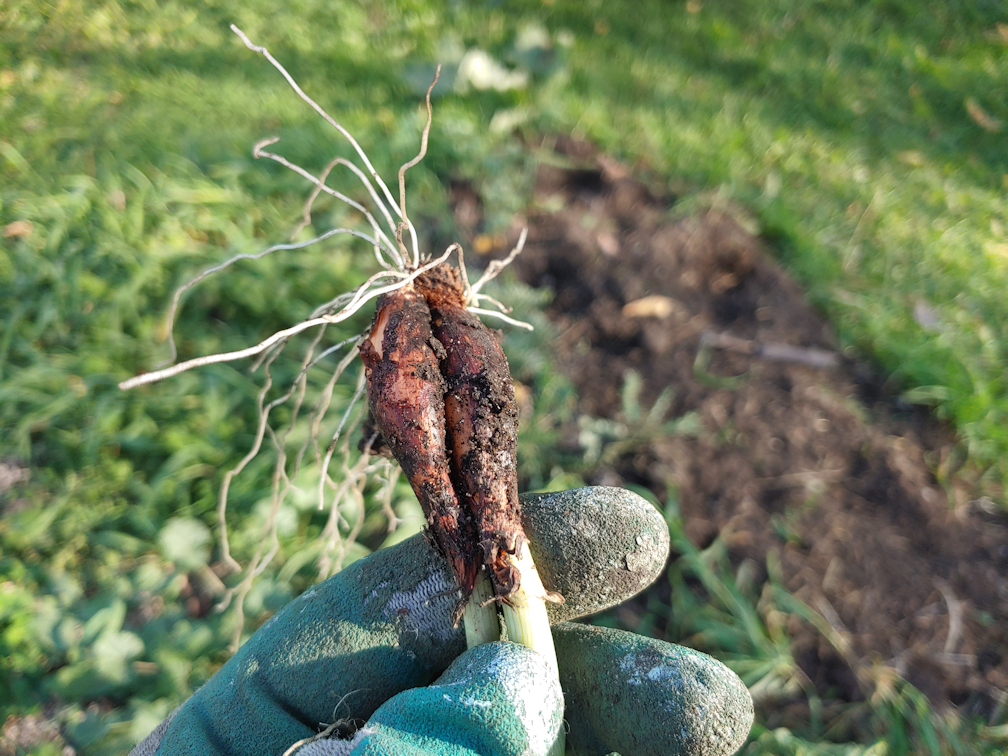 They got set aside on the chicken wire cover over the chard to cure. :-D