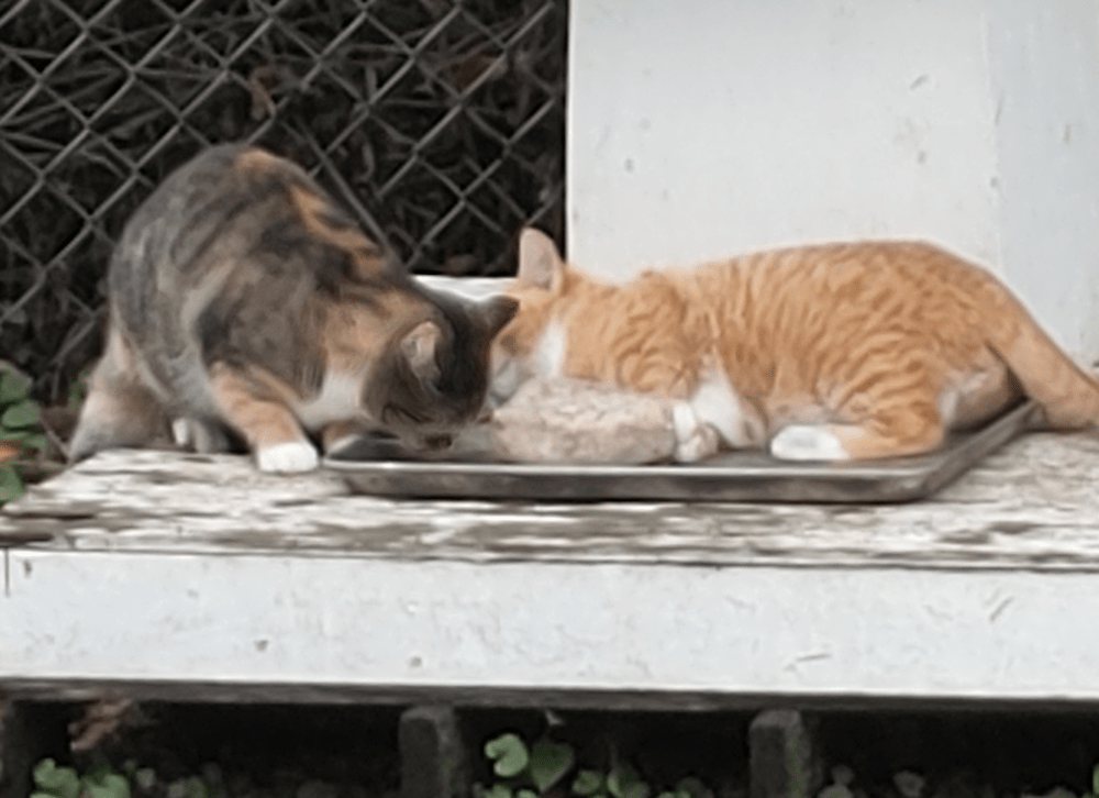 My husband was able to feed the outside cats for me this morning, so when I came out to do the rest of my morning rounds later, most of them had already moved on. Junk Pile Jr. was by the door and aaaalllmost let me pet her, but not quite! She did sniff my hand, though.