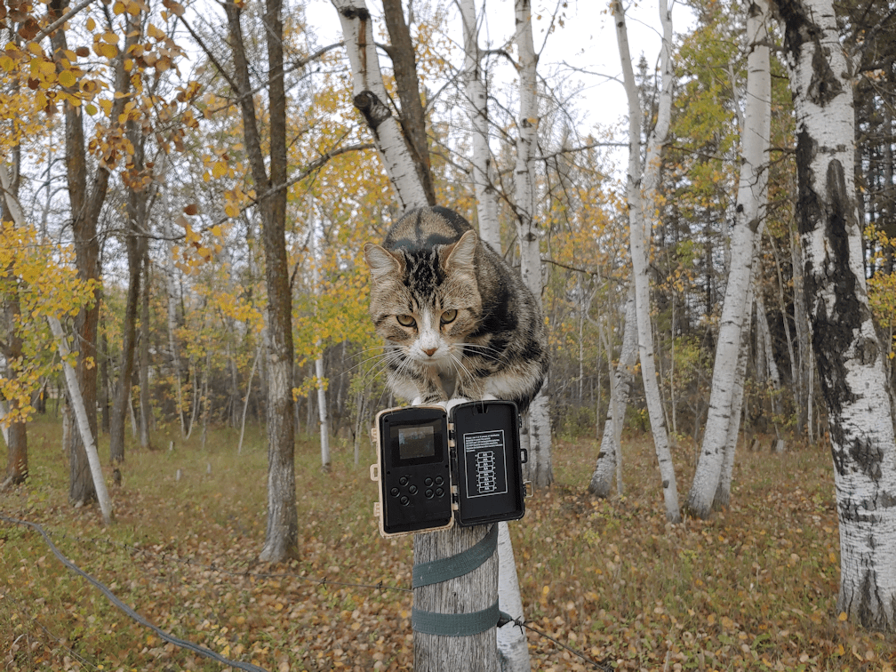 Yesterday evening, I was able to head out and finally work on the dead tree that’s stuck. While I was getting tools out of the sun room, I discovered I was being watched!