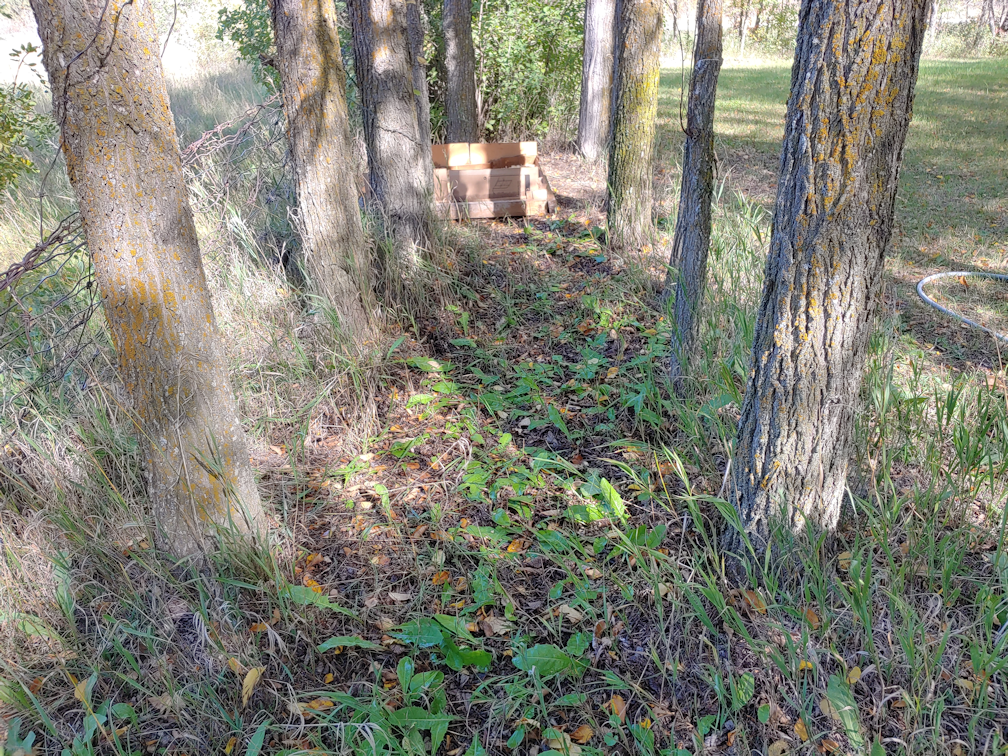 This is where the package of Western Mix seeds went. They didn’t get broadcast until there was no possibility of early germination. Normally, that would probably have been around mid September, but it ended up being at the start of November! I put the seeds in an old bulk-size spice shaker with some soil, gave it a shake to make sure they were well mixed in with the soil, and scattered it not far from where we had just installed the new sign. In the photo, that would be basically right where I was standing to take it. I didn’t want to spread the seeds too close to the fence line, so we wouldn’t be walking on flowers while tending to the fence.