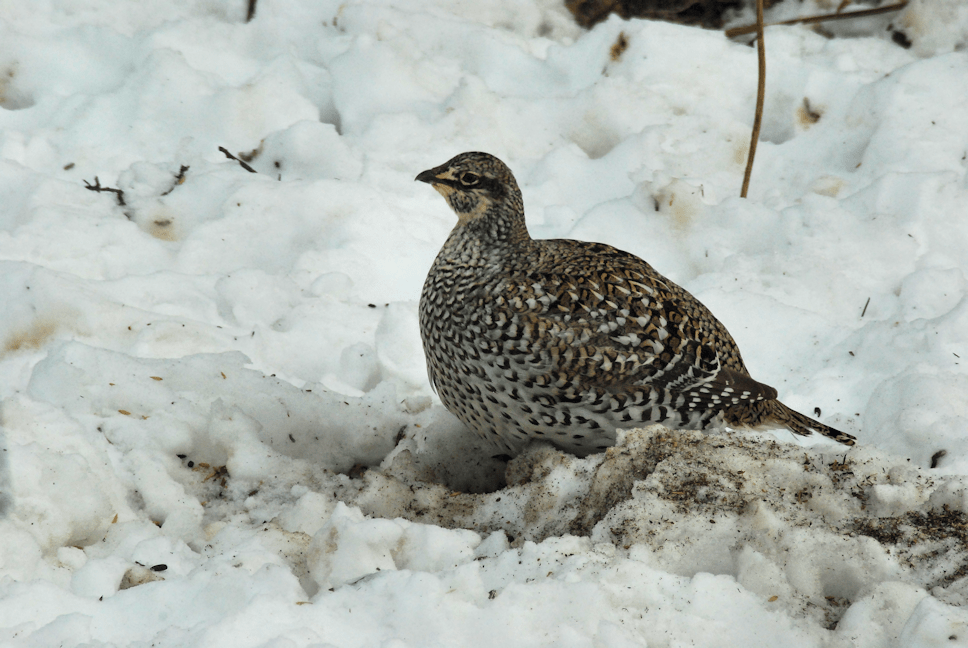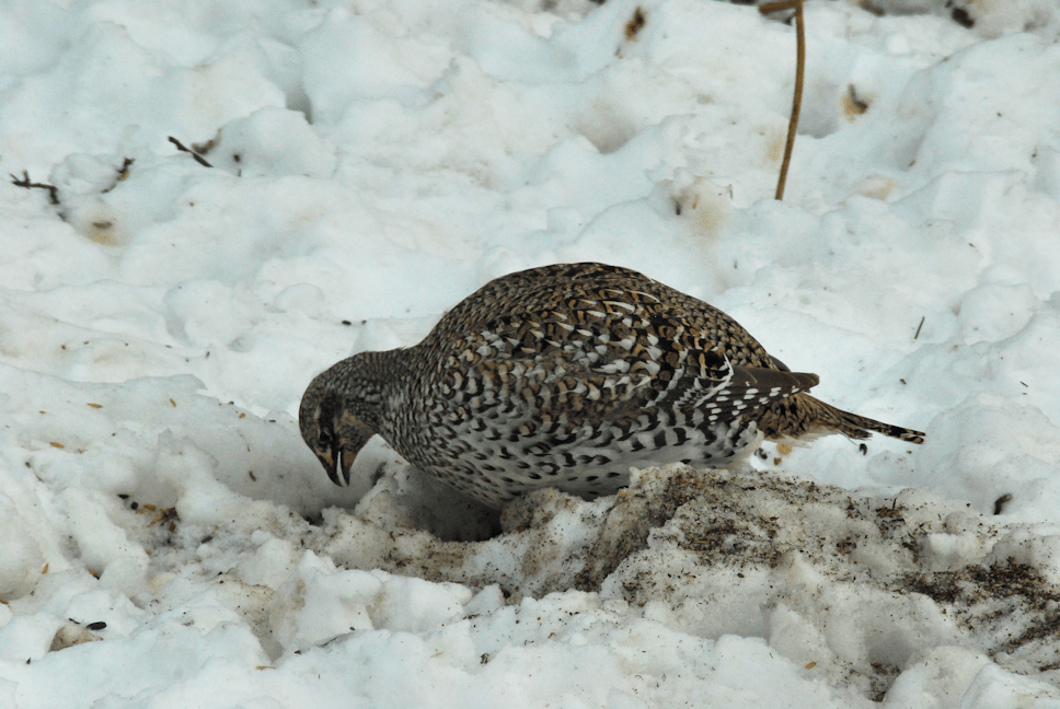 I haven’t seen grouse in the yard in quite a while, and whenever we did, they tended to be under some bushes or trees. This is the first time we’ve seen one at the feeding station!
