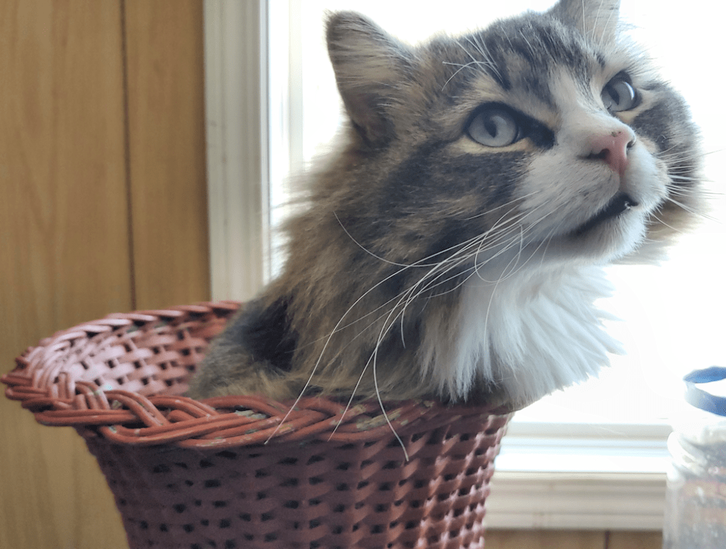 It’s been difficult to get a really good picture of the new addition to our outside cats, but my daughter managed to get one with the DSLR outside our living room window a while back.