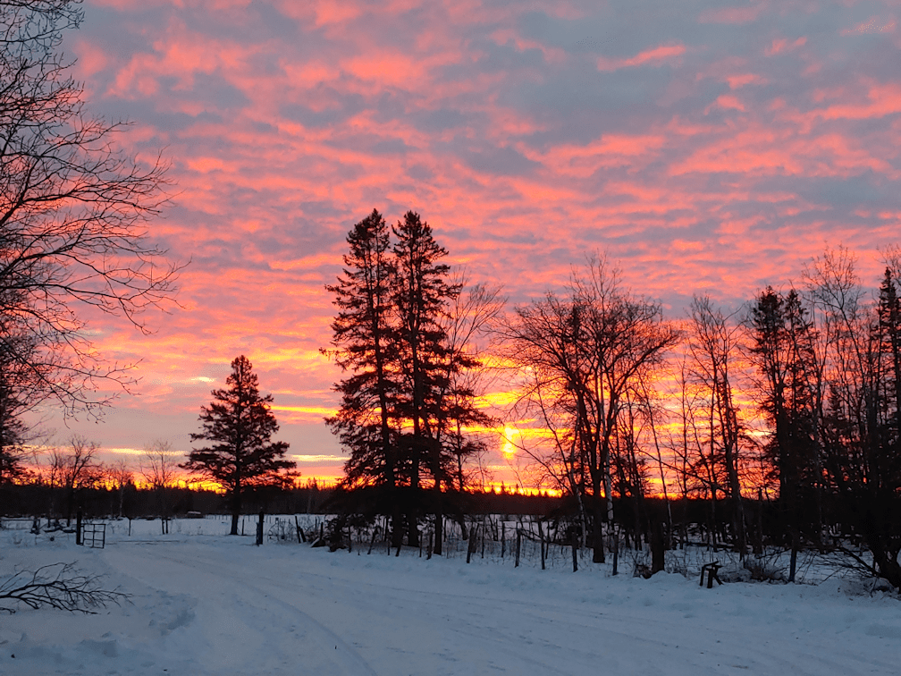 Not even a glorious sunrise quite makes up for having to be heading out so early, on icy roads.
