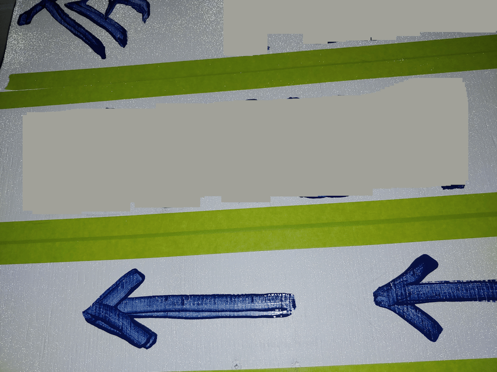 At which point, this morning I decided I may as well get the lettering finished. I used painter’s tape to divide the sign into sections, then a pencil to draw in the letters and numbers as a guide, then added the first, base layer of the blue paint.