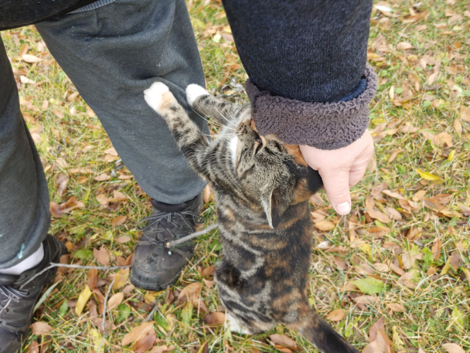 Butterscotch came over for some attention. She even followed me while I was doing my rounds and let me carry her for a while. Nutmeg and Rolanda also came over for extra attention. Nutmeg even followed me into the sun room when I tried to go inside, and he did NOT want to leave!