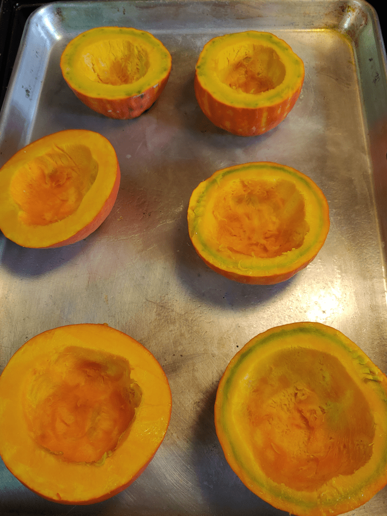 I decided to roast them, as the easiest way to compare. While preparing them, I saved their seeds, including keeping the mutant squash’s seeds separate. If we liked it enough, we would try growing it next year, and see what we get.