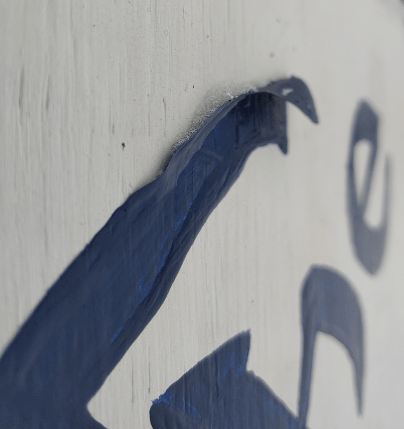 My guess is that the reflective paint on top of the white affected the ability for the blue paint to adhere properly.