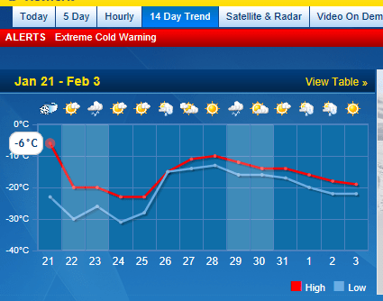 That’s right. Tomorrow, we’re supposed to warm up to -6C/21F !!