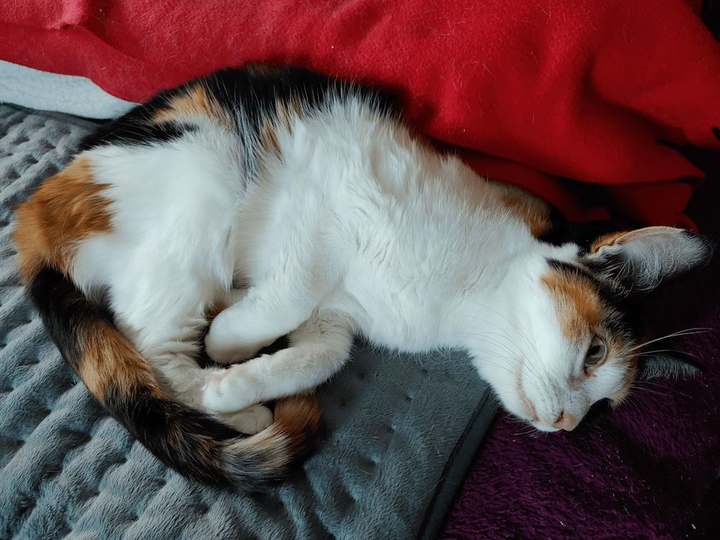 Cabbages is moving around more, and her balance is getting better. Her vision is also improving. She has even had a bowel movement in the litter box; the first since they’ve had her. With all the medications she’s on, it was a real mess, but it shows her system is still working.