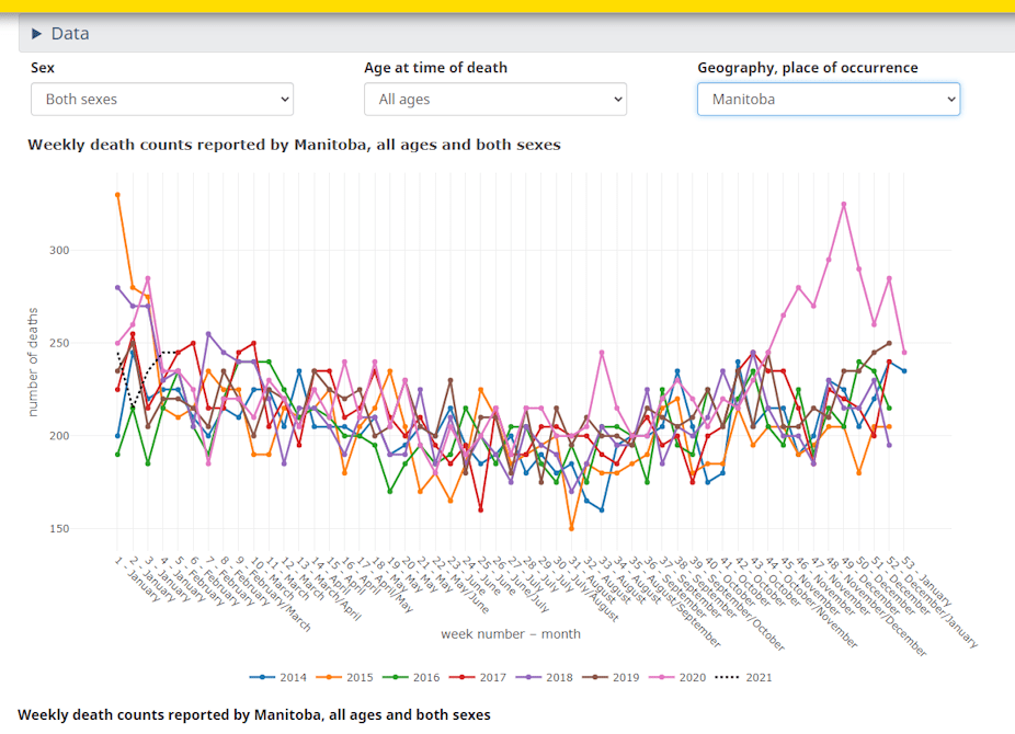 The first thing you’ll notice is that Manitoba’s data is a year behind. I’ve been keeping an eye on these numbers for a couple of years now, and they have been consistently behind all other provinces.