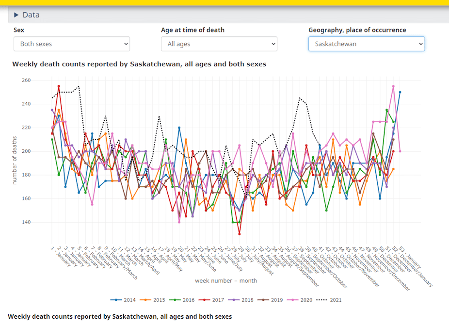 The things is, the prairie provinces never had reason to shut down in the first place. Check out these screen captures I took today, from the StatCan Provisional weekly all-cause death data.