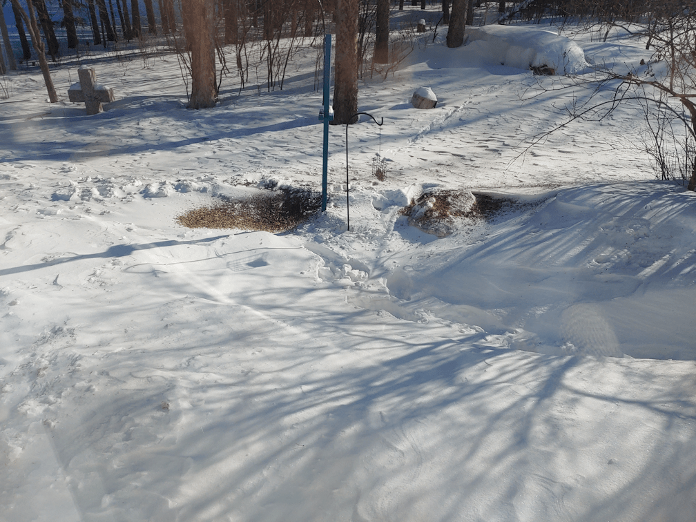 While outside, I shoveled out the last two paths that were left to do. One was the path to the feeding station. The other was the cat path from the kibble and cat house, to the storage house.