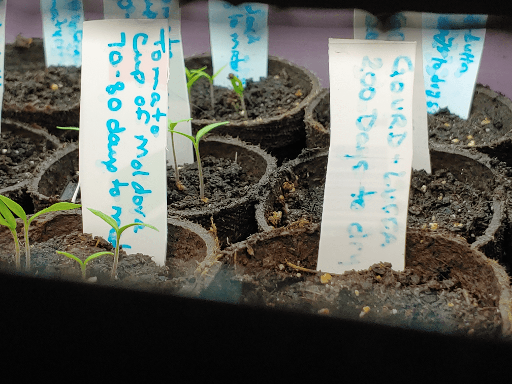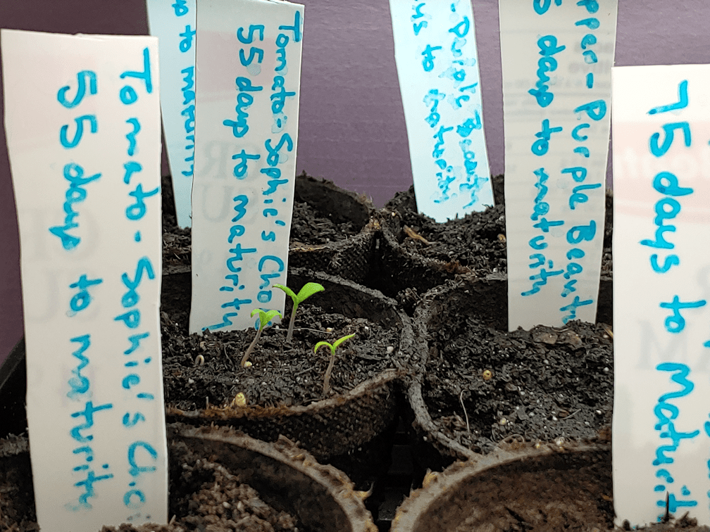 With one type of tomato already starting, I was kind of expecting the second type to sprout soon, but we had one more surprise waiting for us.