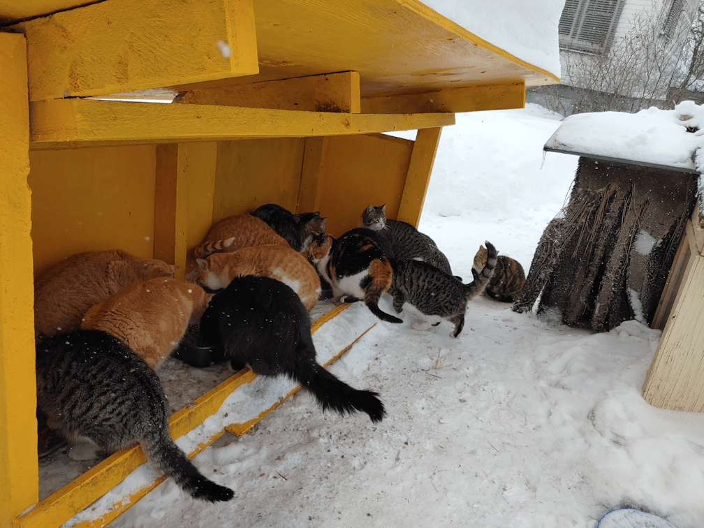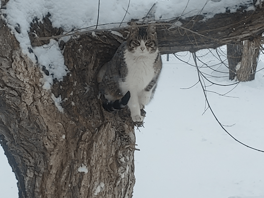 The cold temperatures are hanging in there, but the outside cats seem to be doing quite well.