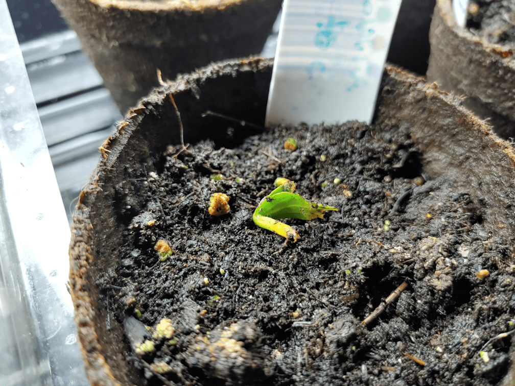 That little bit of seedling had been right against the side of the pot, but when I touched the leaves, it fell right out.