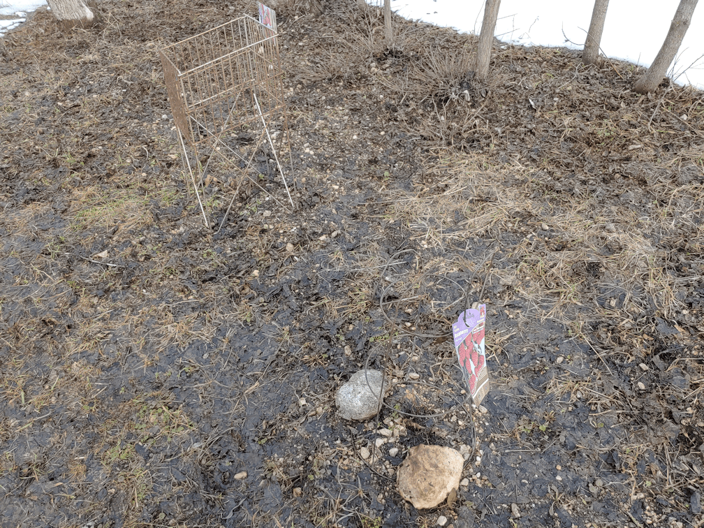 Hopefully, the raspberries have survived. Shortly after we transplanted them last year, they got hit by that one unusually cold night in late May that killed off so much. Then there was the drought, the heat waves and the deer. Now we’ve got this winter that just doesn’t want to let go. These poor bushes have had a very rough start! At this point, there’s no way to see if they’ve survived the winter. Hopefully, we’ll know in a couple of weeks.