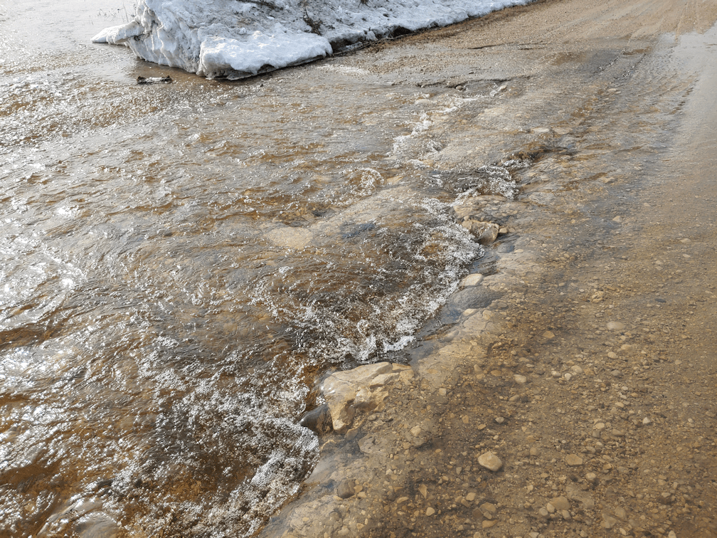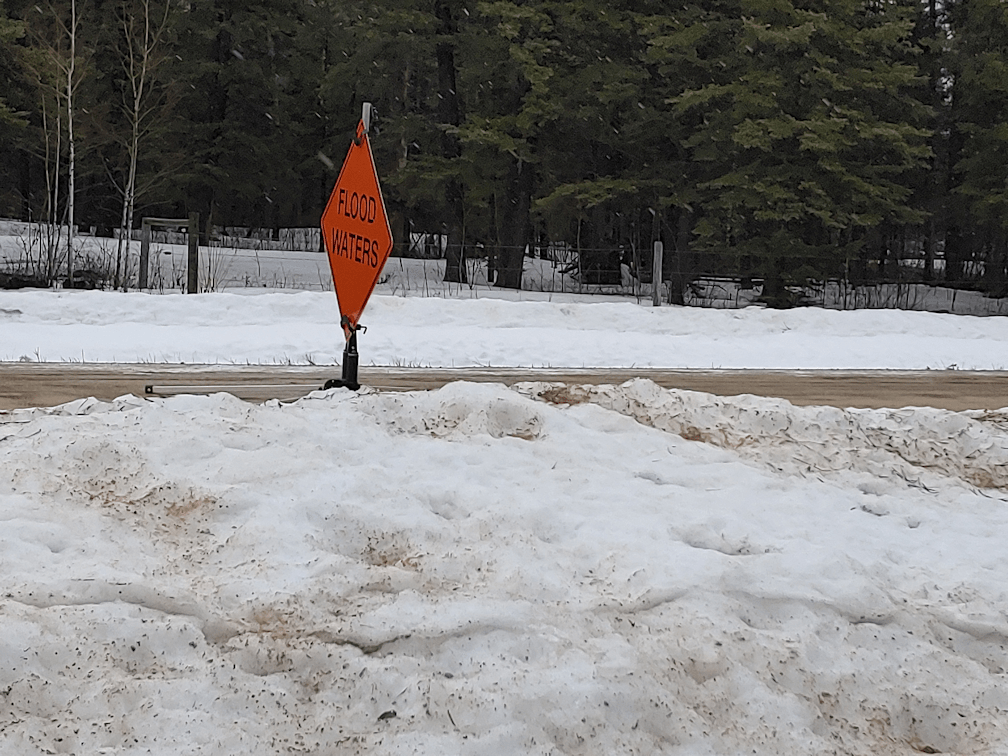 If we do get more rain – and our weather alert has now switched to a rainfall warning – I am not sure that the culvert in the photos above will be able to handle the increase in water. Unless it washes out in another spot, first! The temperature is suppose to increase quite a bit tomorrow, which means there will be more snow melt as well as any rain we might get. It’s going to be touch and go.